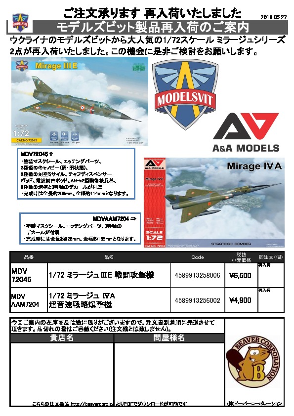 A&Aモデルズ新製品のご案内 2019.06.04