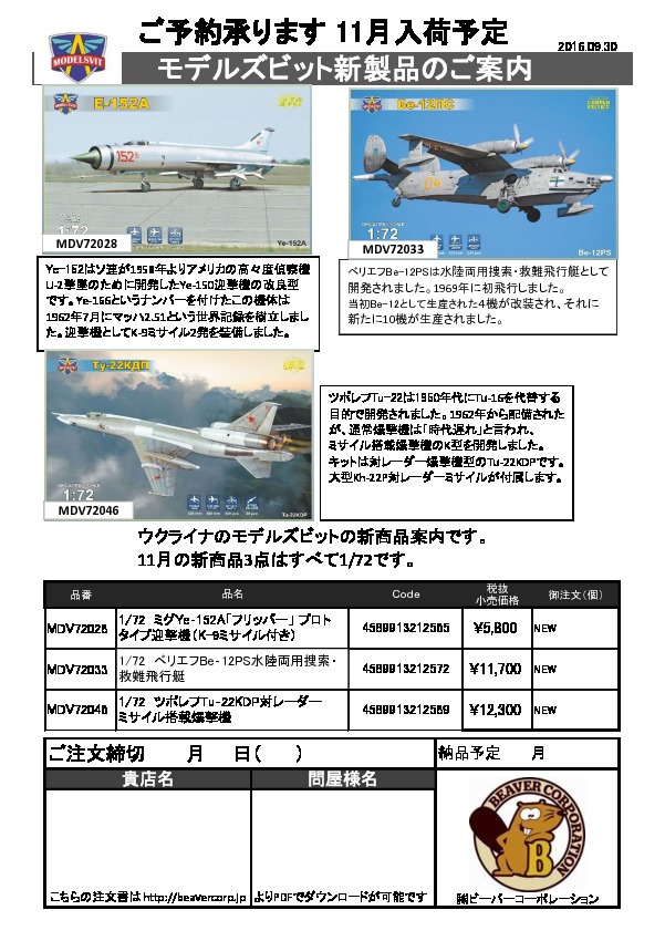 モデルズビット新製品のご案内 2016.09.30