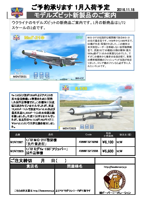 モデルズビット新製品のご案内 2016.11.21
