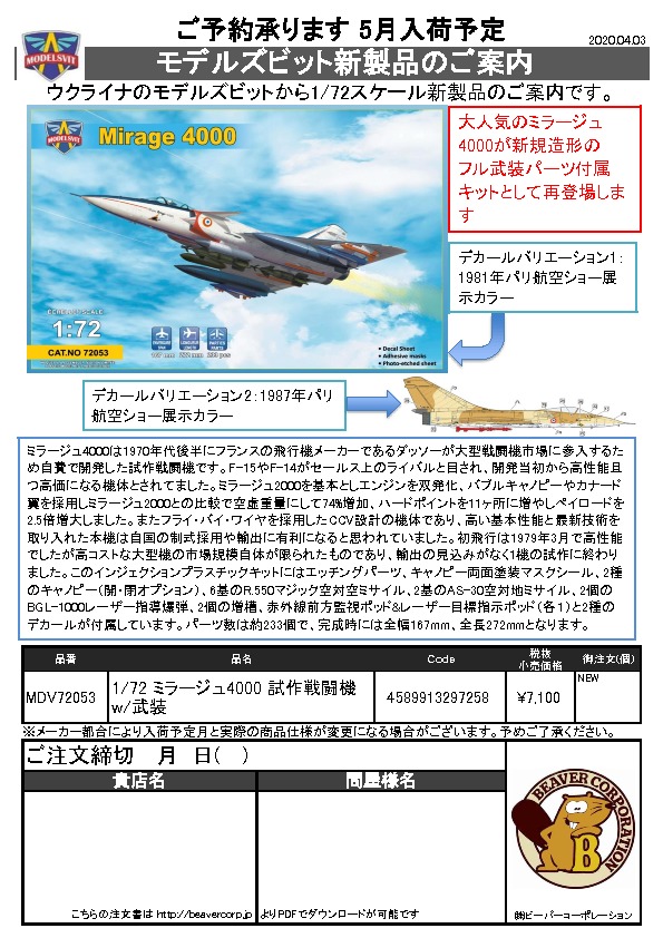 モデルズビット 新製品のご案内 Mirage 4000 2020.04.03