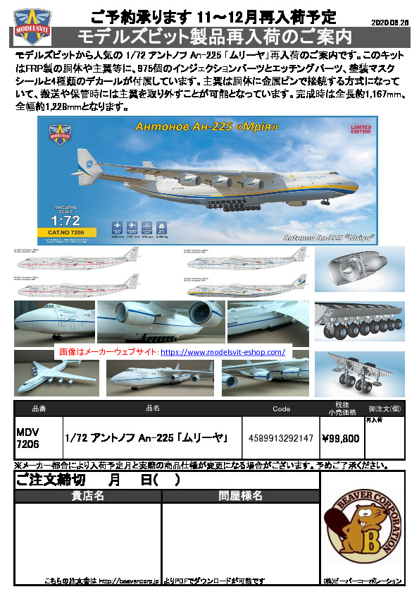 モデルズビット 製品再入荷のご案内 An225 2020.08.26