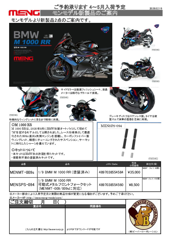 MENG 新製品案内 1/9 BMW M 1000 RR 2026.01.07