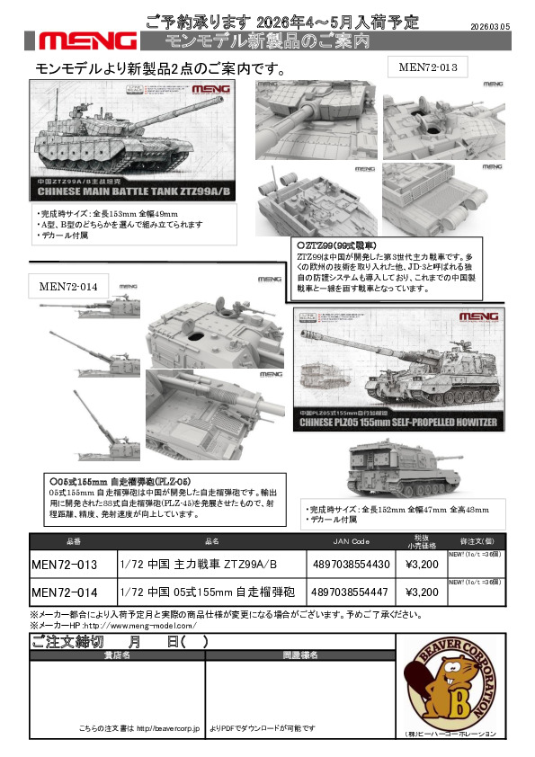 MENG 新製品案内 T-72B3M, ZX-10R, J-20 2025.05.20