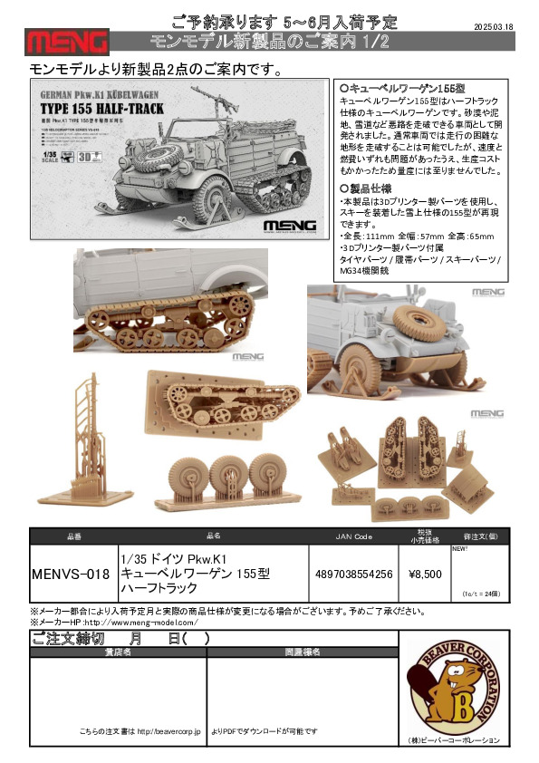 MENG 新製品 1/35 キューベルワーゲン155型 遼寧塗装済 2025.03.18