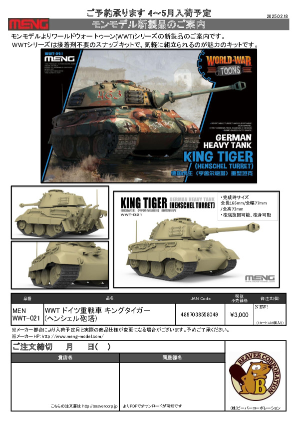 MENG 新製品案内 WWT キングタイガー ヘンシェル 2025.02.18
