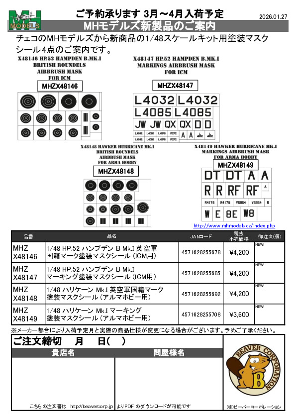 MHモデルズ 新商品マーキング塗装マスクご案内 2026.01.27