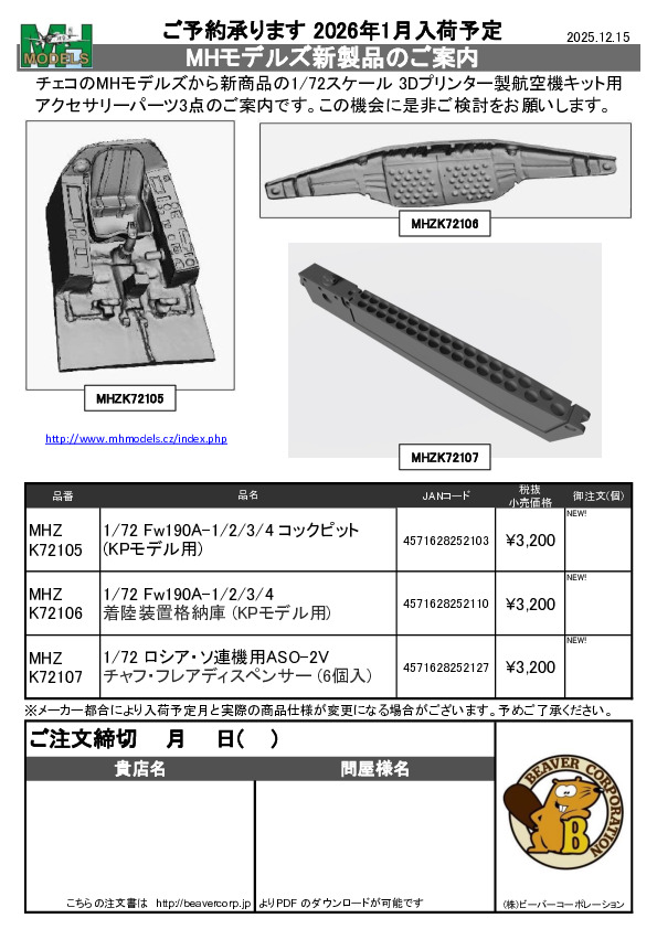 MHモデルズ 新商品アクセサリーご案内 2025.12.15