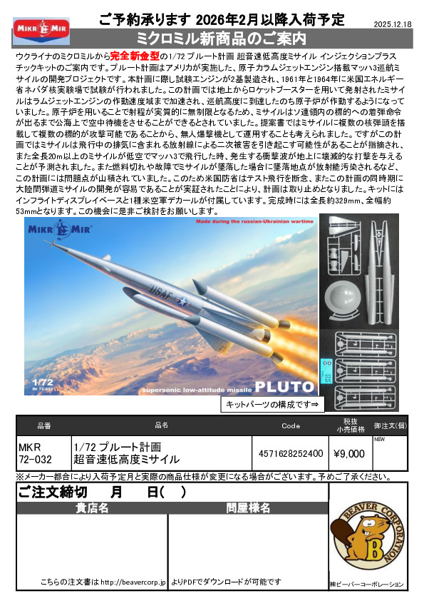 ミクロミル 新商品 プルート計画ミサイル ご案内 2025.12.18