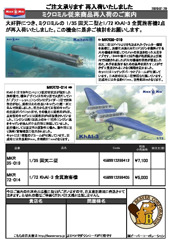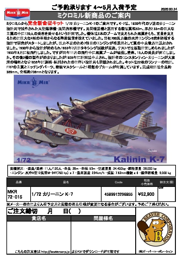 ミクロミル 新商品ご案内 1/72 カリニン K-7 2020.03.24