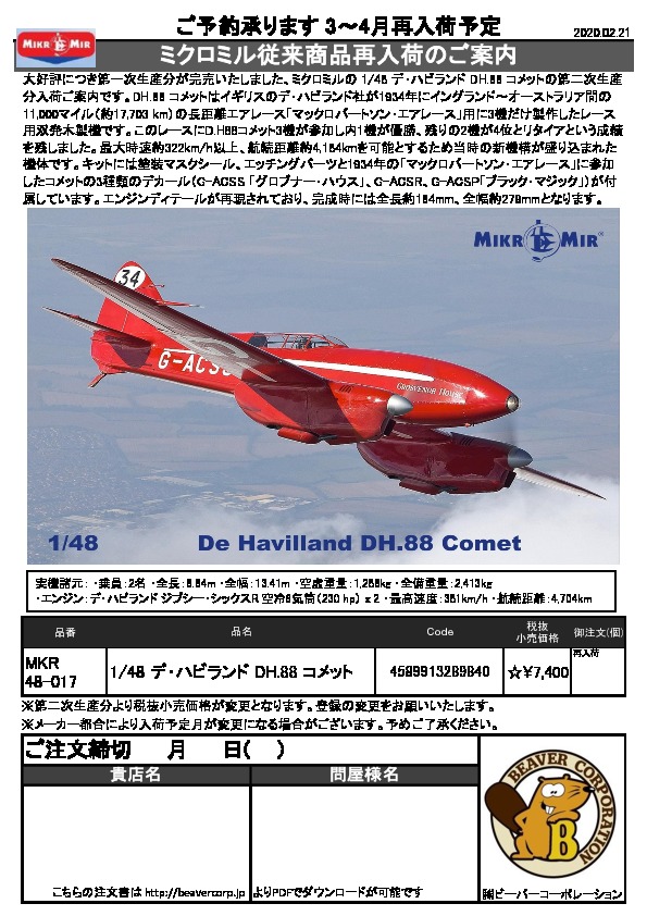 ミクロミル 再入荷ご案内 DH88 2020.02.21