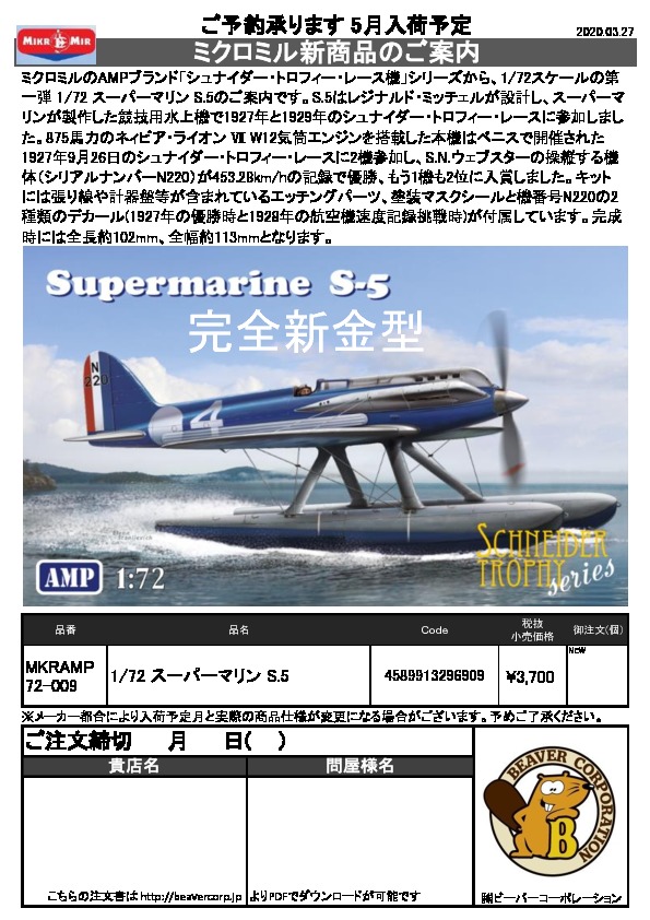 ミクロミル 新商品ご案内 1/72nd S-5 2020.03.27