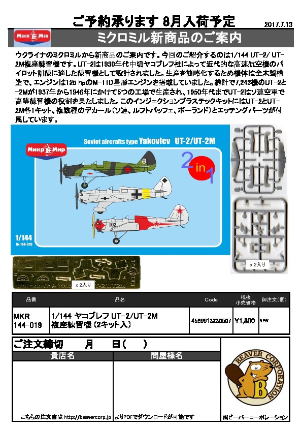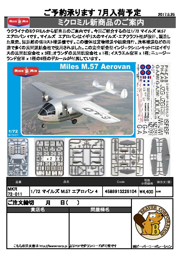 ミクロミル新商品ご案内 1/72 M.57 エアロバン 4 2017.05.25