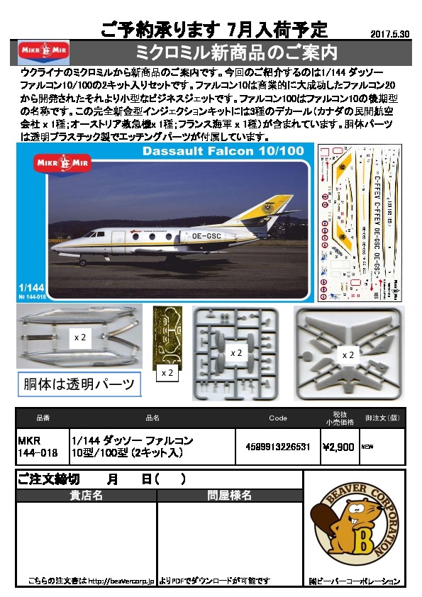 ミクロミル新商品ご案内 ファルコン 2017.05.31