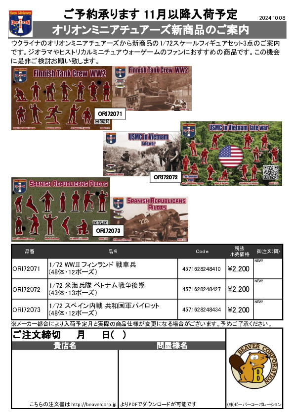 オリオン 1/72 フィギュア 再生産商品ご案内 2024.08.01