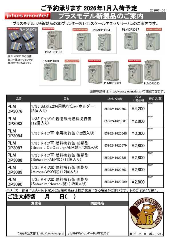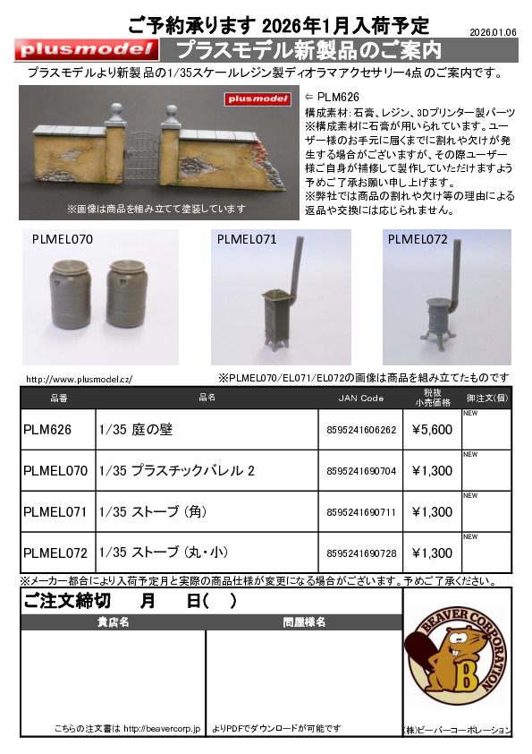 プラスモデル新製品 1/35 1/72注文書2026.01.06