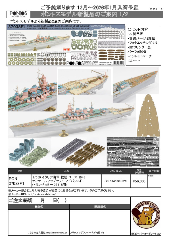 ポントスモデル 新製品 1/700 ローマ & ウォースパイト用 ディテールセット 2025.11.18
