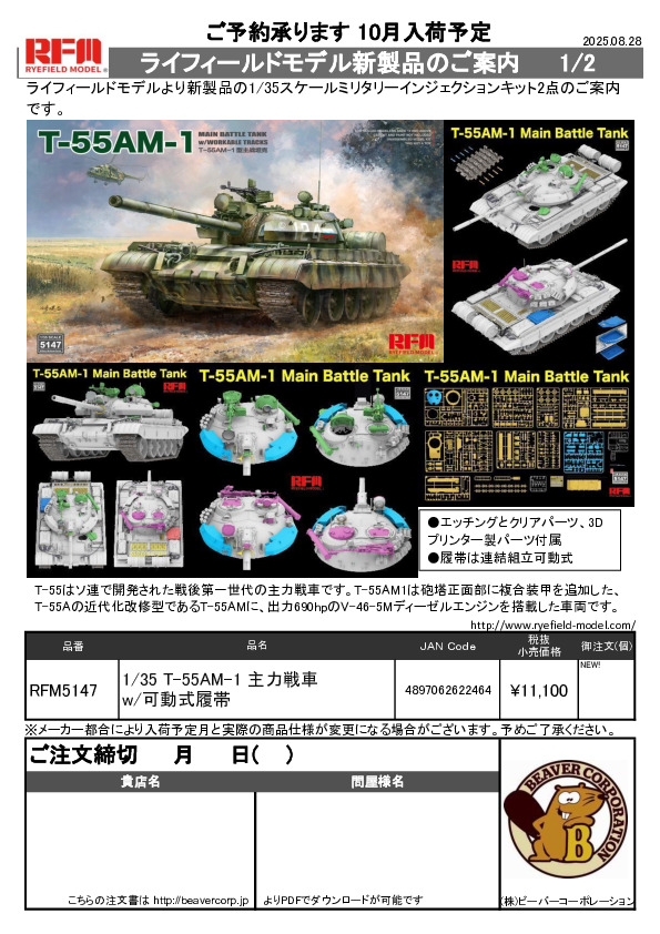 ライフィールドモデル 新製品 1/35 T-55 & JLTV 注文書 2025.08.28