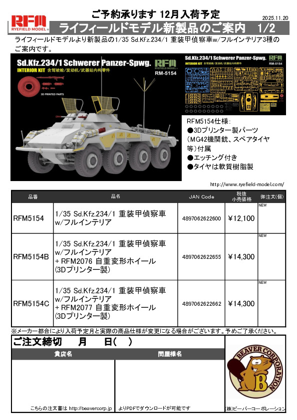 ライフィールドモデル 新製品 1/35車輛 & ディテールパーツ 注文書 2025.06.04