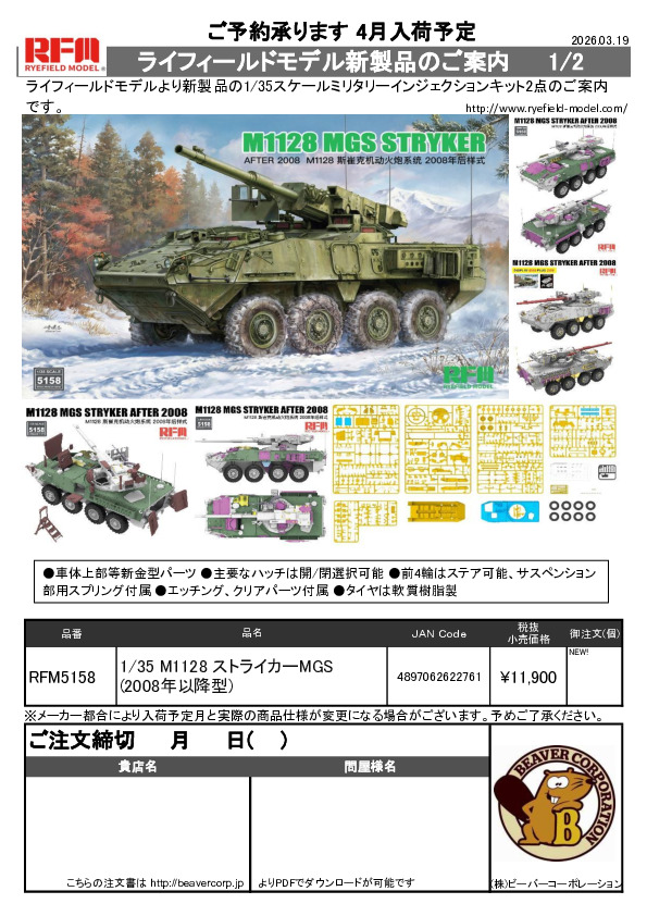 ライフィールドモデル 新製品 1/35 ストライカー & キングタイガーwクリアパーツ 注文書 2026.03.19