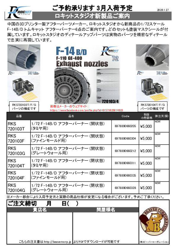 ロキットスタジオ F-14 アフターバーナー 新商品ご案内 2026.01.27
