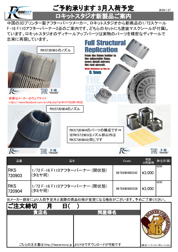 ロキットスタジオ F-16用 新商品ご案内 2026.01.27