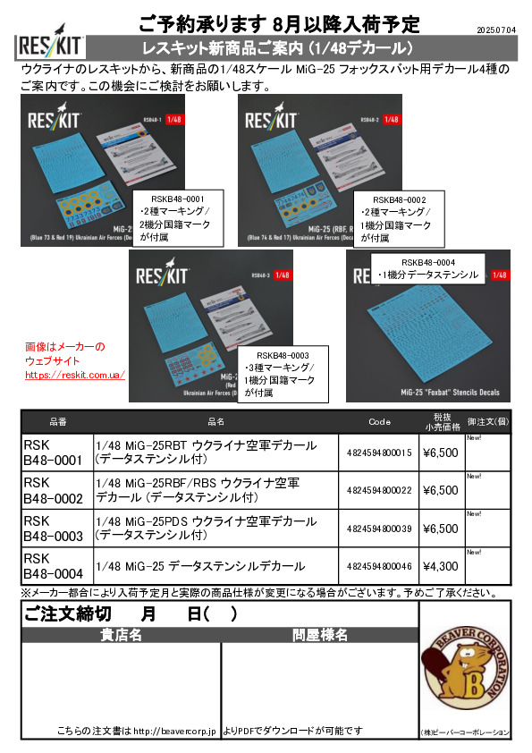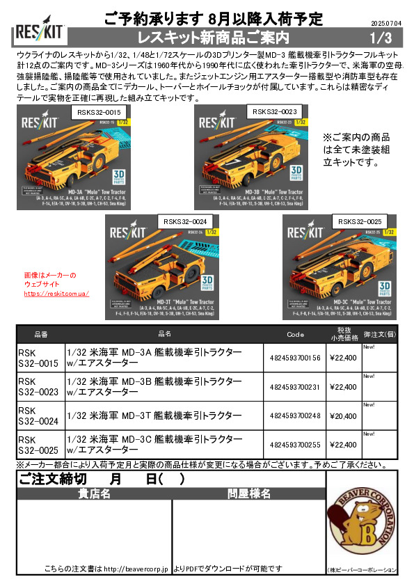 Reskit 1/72nd 新商品Bご案内 2025.07.04