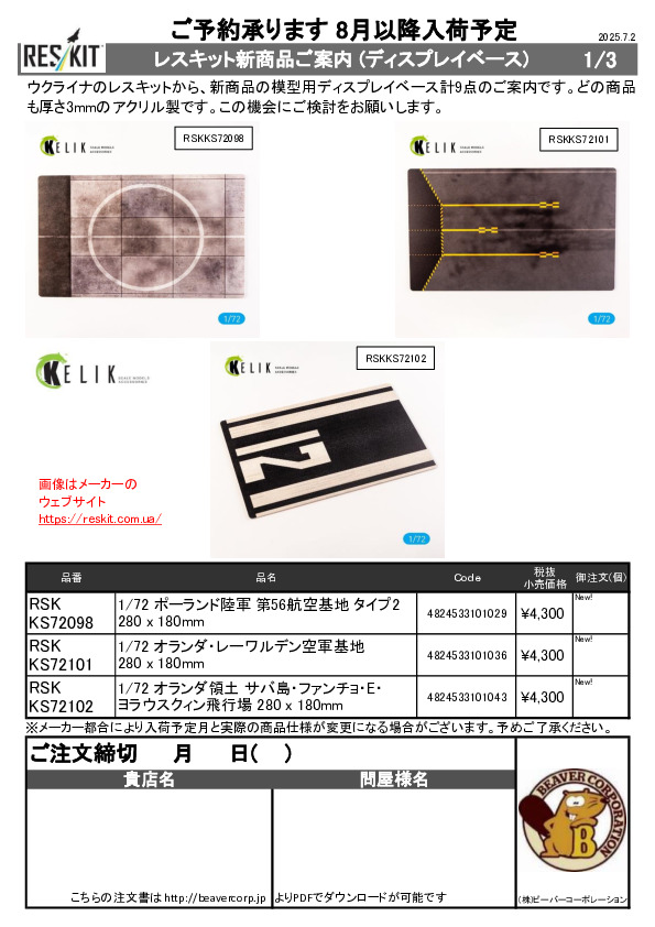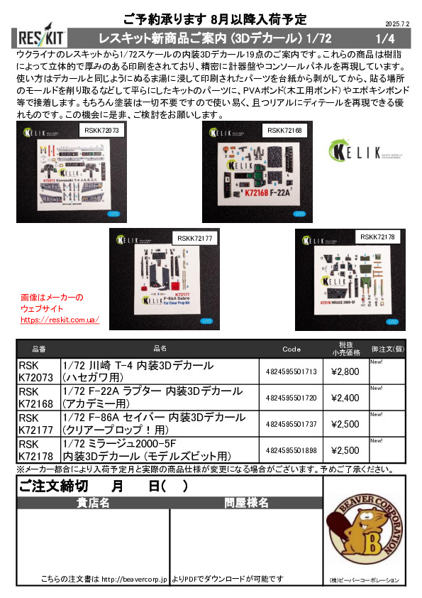 Reskit 1/72nd 新商品B ご案内 2025.04.07