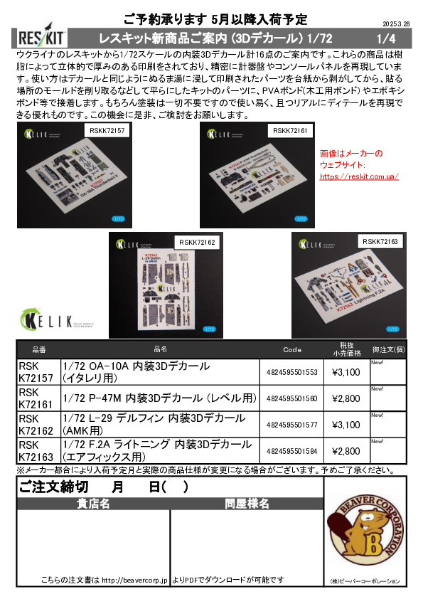 Reskit 3Dデカール新商品B ご案内 2025.03.28