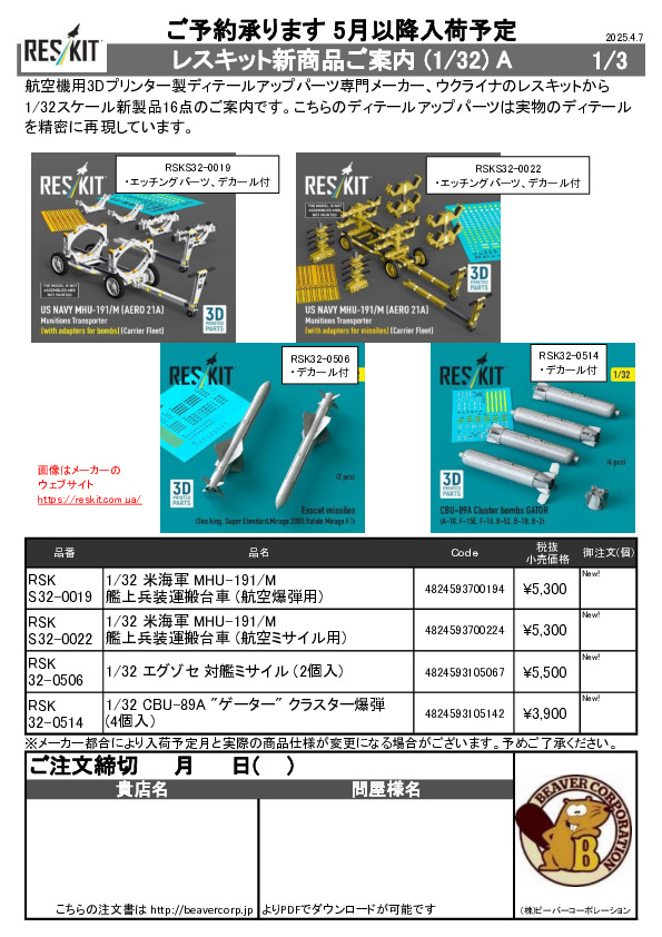 Reskit 1/32nd 新商品Bご案内 2025.04.07