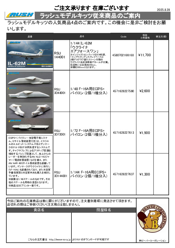 ラッシュモデルキッツ 在庫あり従来品ご案内 2025.08.28