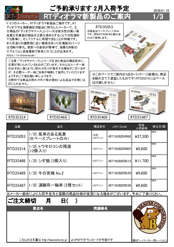 RTディオラマ 新製品注文書 16アイテム 2026.01.16