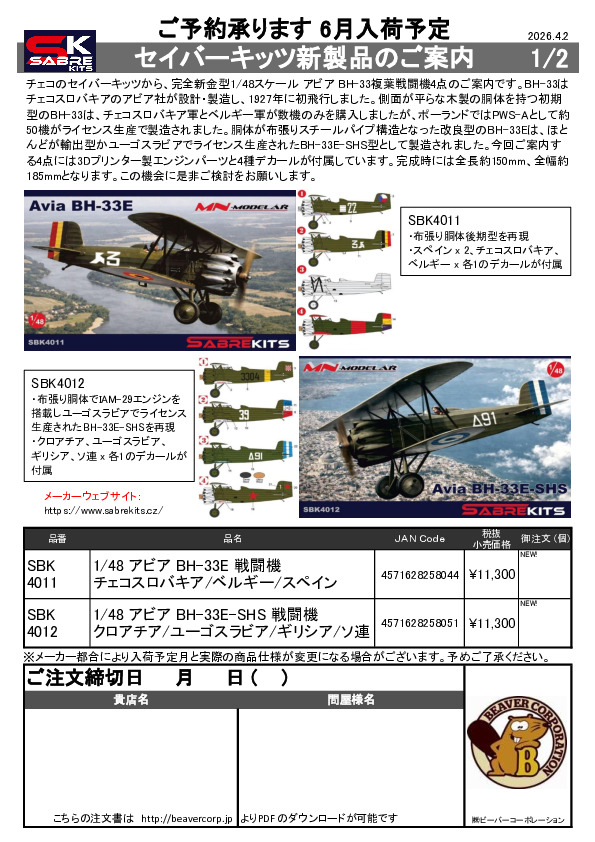 セイバーキッツ 1/48 新商品案内 2026.04.02