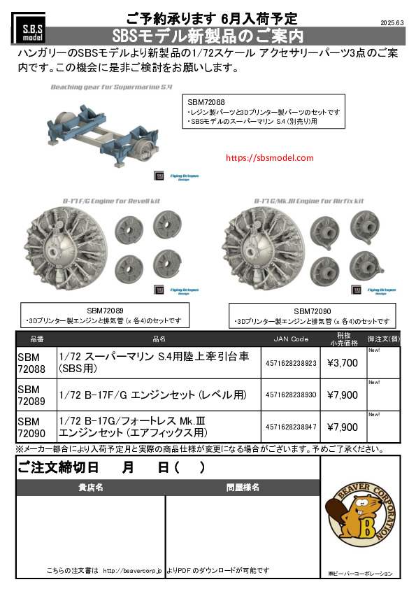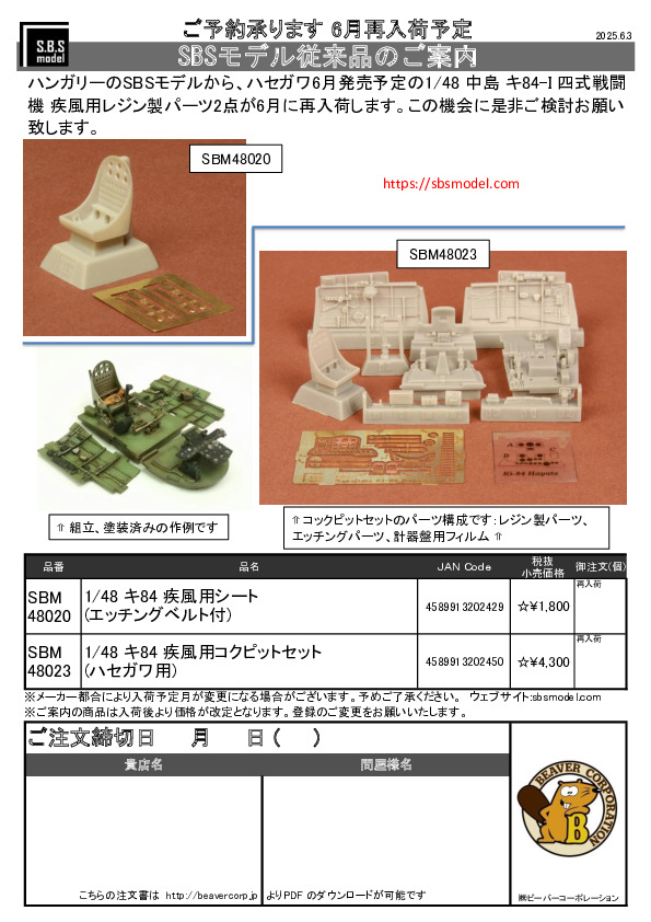 SBS 航空機再入荷従来品ご案内 2025.06.03