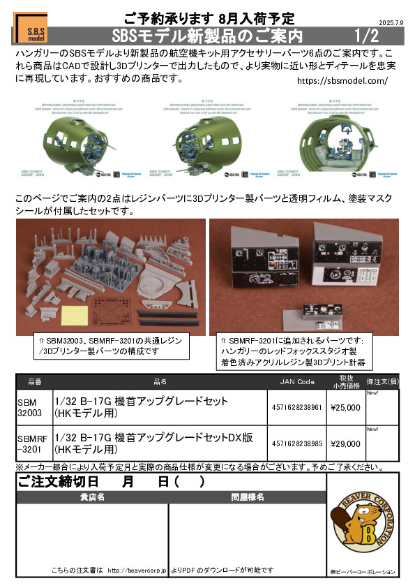 SBS 航空機パーツ新製品ご案内 2025.07.09