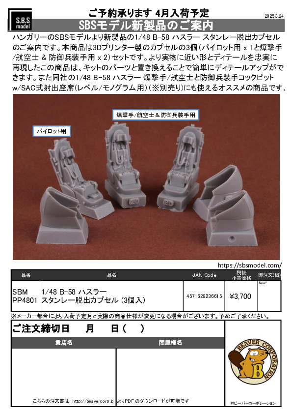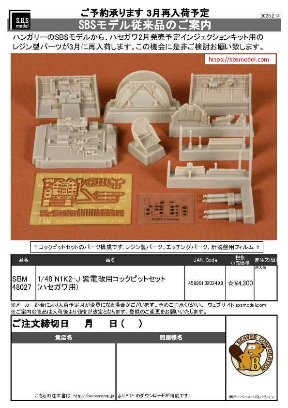 SBS 航空機模型 新製品ご案内 2025.02.14