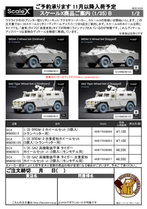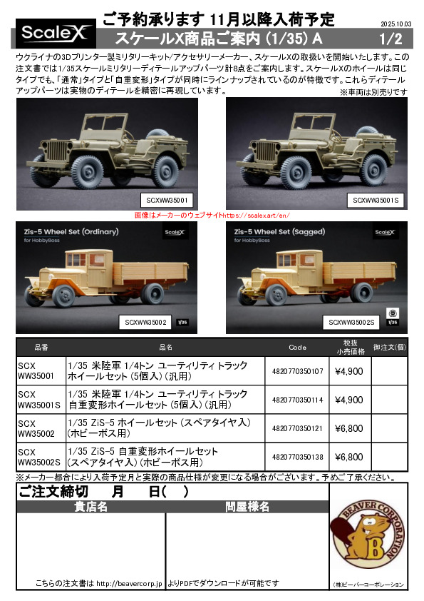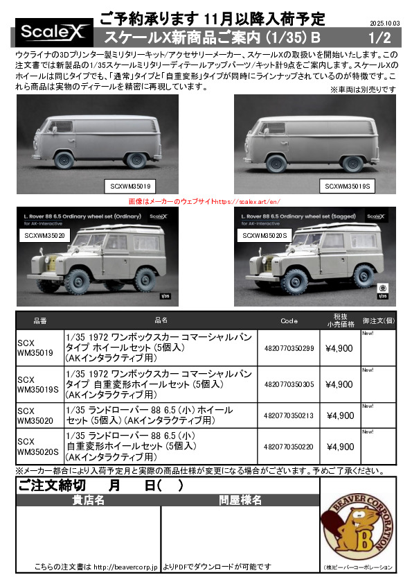スケールX 1/35th新商品ご案内A 2025.10.03