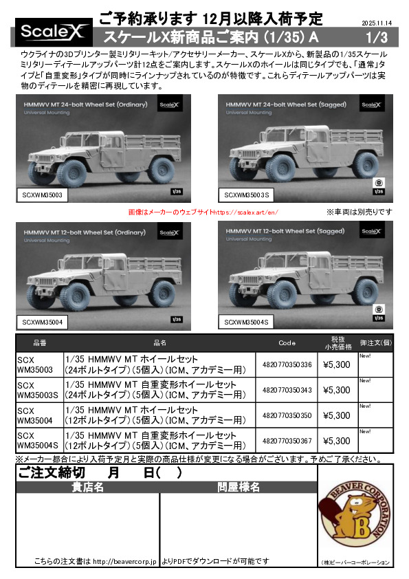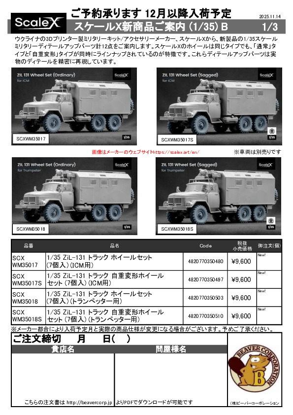 スケールX 1/35th 新商品ご案内A 2025.11.14