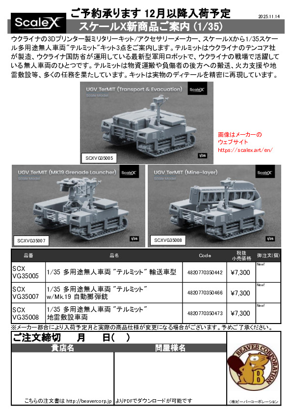 スケールX 1/35th 新商品ご案内C 2025.11.14