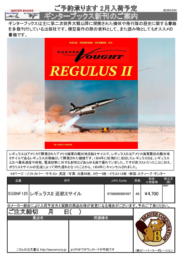 ギンターブックス 新刊注文書 NF125 レギュラスII 巡航ミサイル 2026.02.04