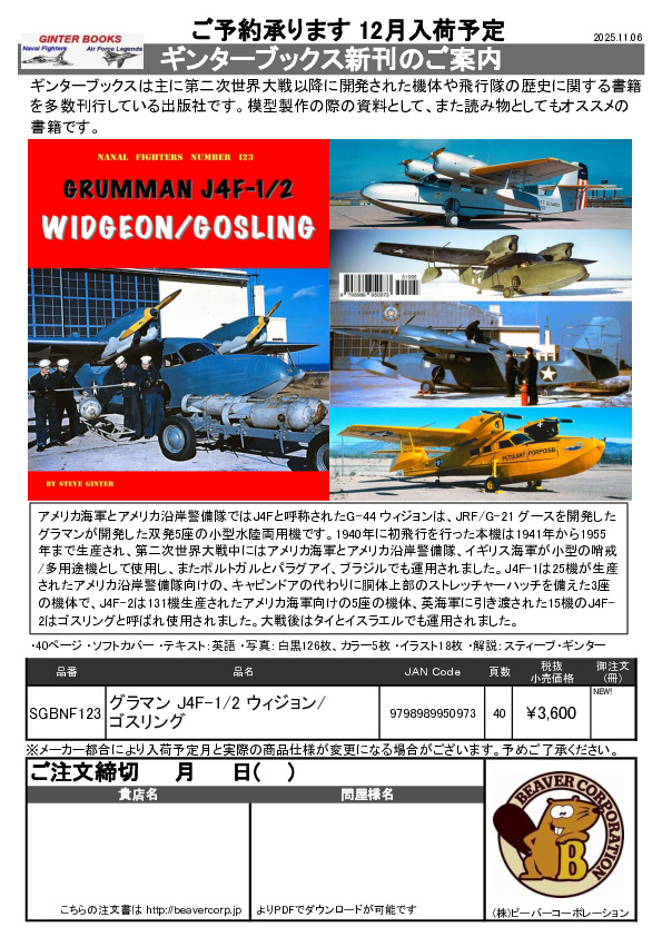 ギンターブックス 新刊注文書 ローニング水陸両用機 2025.08.04