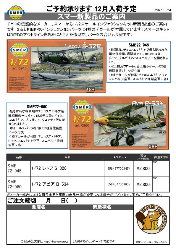 スマー 新製品案内 飛行機 3点 2024.11.12