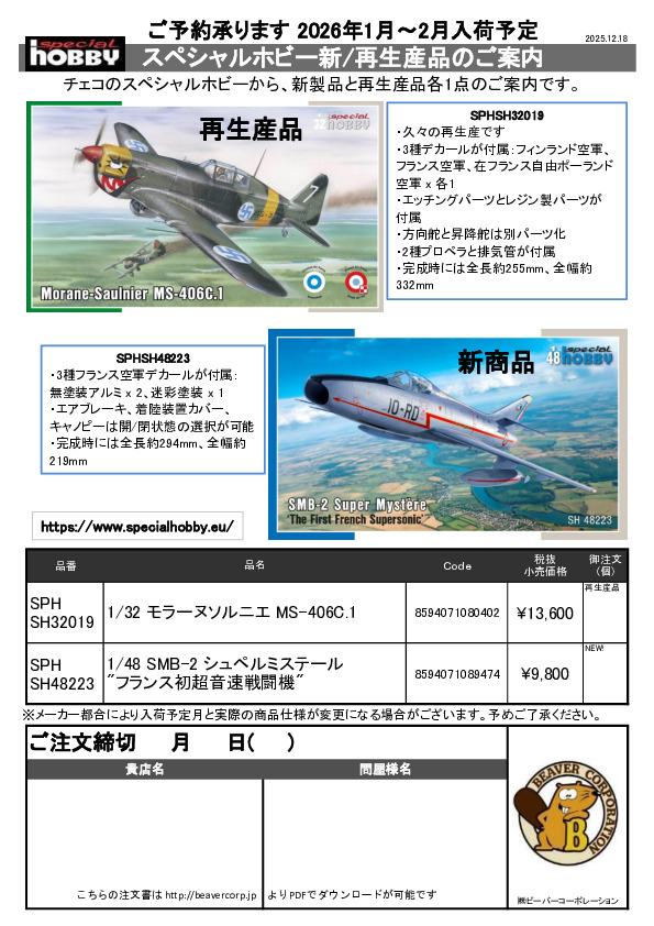 スペシャルホビー 新商品ご案内 2025.12.02