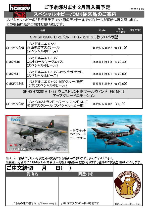 スペシャルホビー CMK 製品 SPH用ご案内 2025.01.29