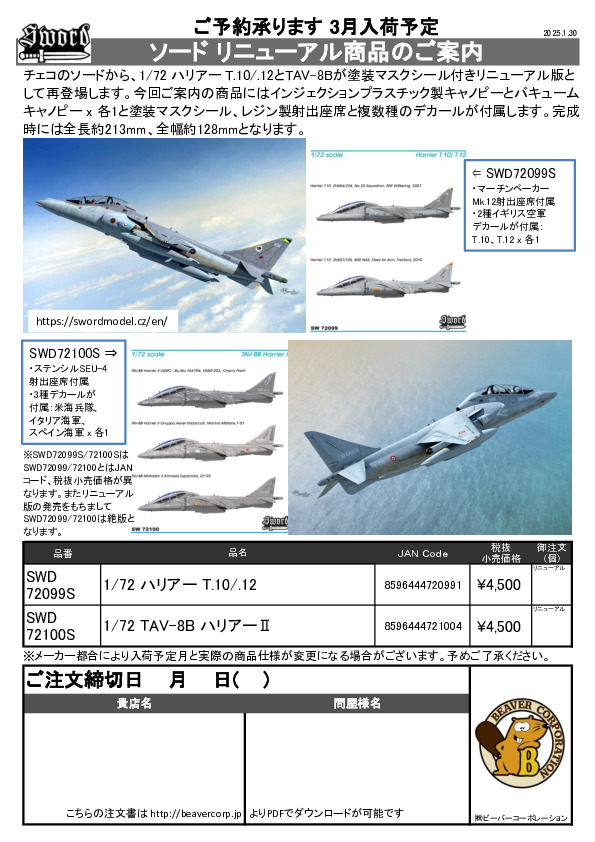 ソード 1/72 ハリアー 2点 リニューアル 商品ご案内 2025.01.30