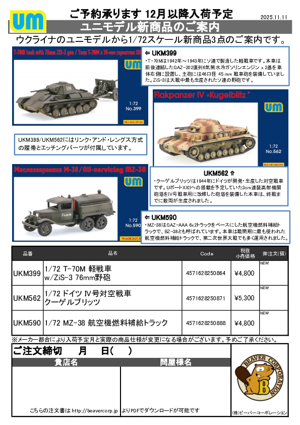 ユニモデル 新商品ご案内 1/72 WWII ドイツ戦車 3点2023.07.26