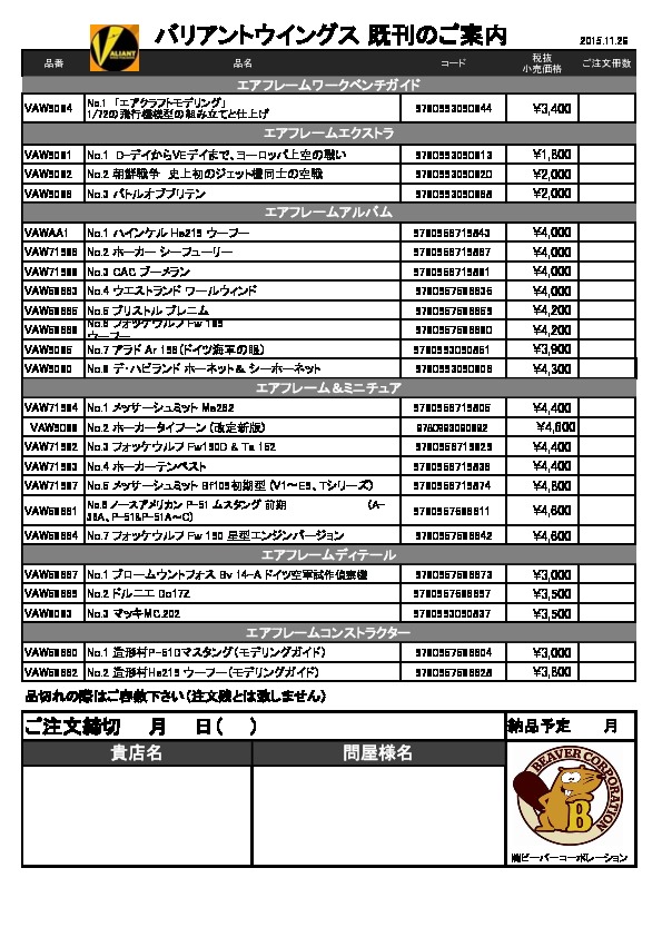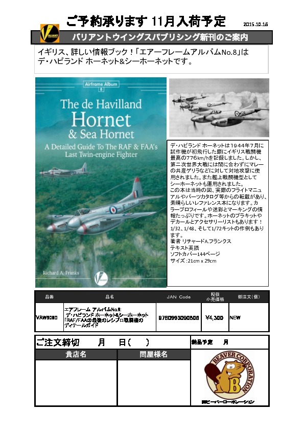 バリアントウイングス新刊のご案内ホーネット 2015/10/16