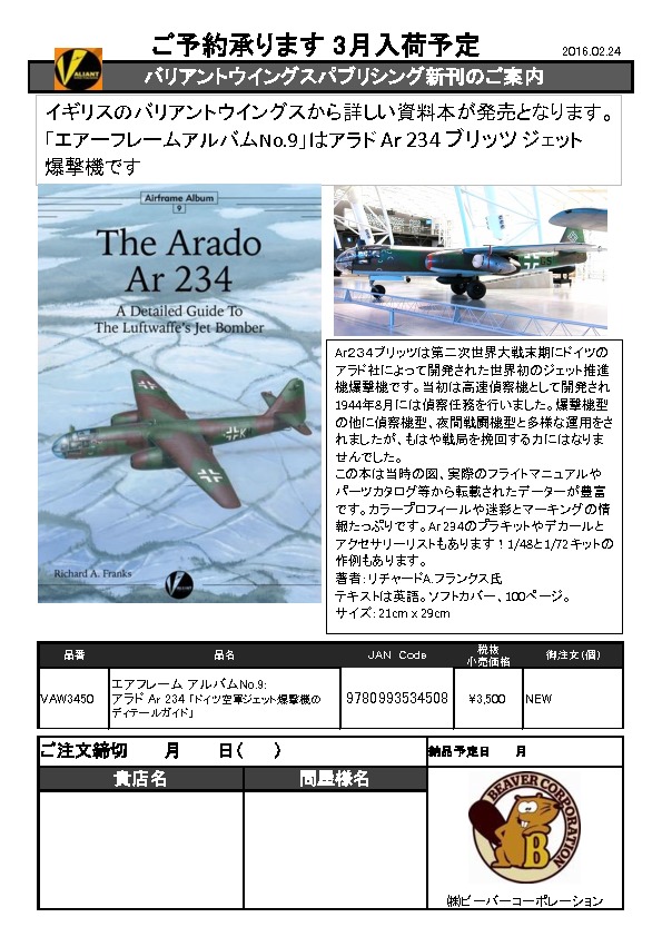 バリアントウイング新刊ご案内Ar234 2016/02/24