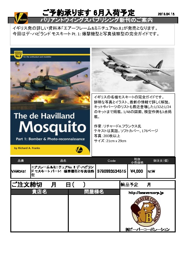バリアントウイングス新刊ご案内モスキート 2016/04/18