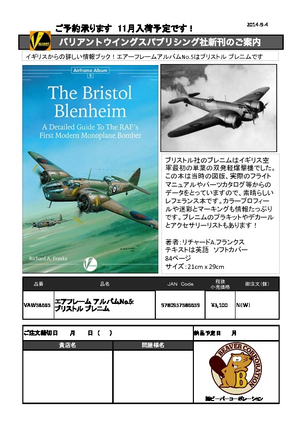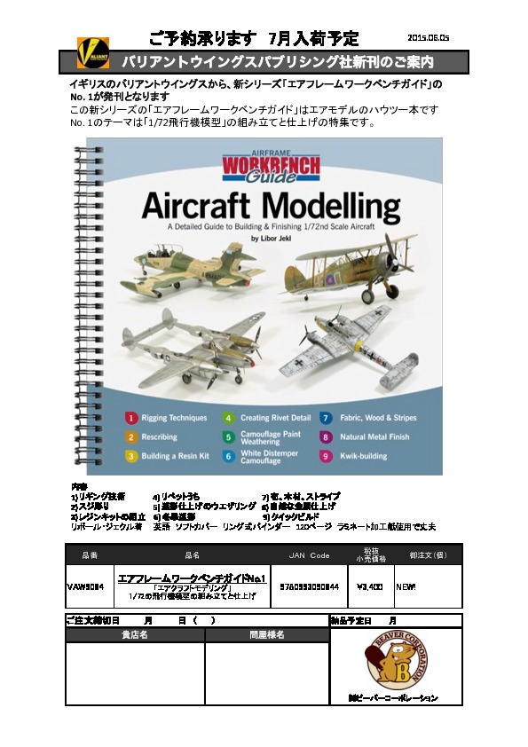 バリアントウイング新刊ご案内エアフレームワークベンチ 2015/06/05
