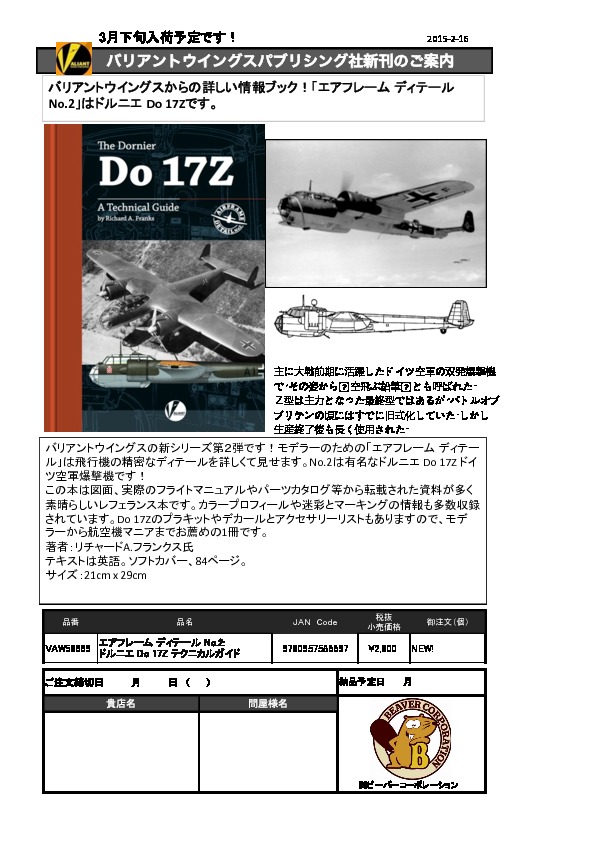 バリアントウイング新刊Do 17Zご案内 2015/02/16